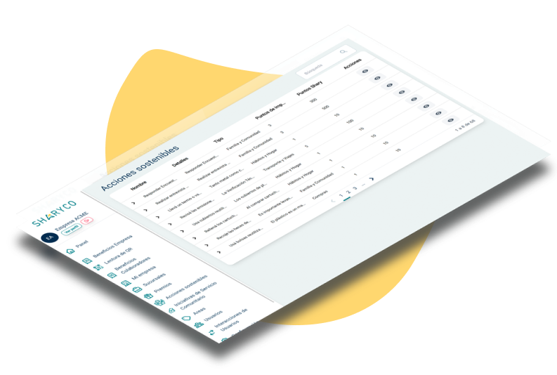 SharyCo motiva a los colaboradores a adoptar hábitos sostenibles a través de desafíos, gamificación y recompensas. Ayuda a las empresas a alcanzar sus objetivos de sostenibilidad y bienestar, mejorando el engagement y midiendo el impacto con métricas claras. Los empleados ganan puntos y acceden a beneficios por sus acciones sostenibles, convirtiendo los programas de incentivos en oportunidades con propósito. ¡Transforma tu cultura organizacional con SharyCo y genera un impacto positivo real!